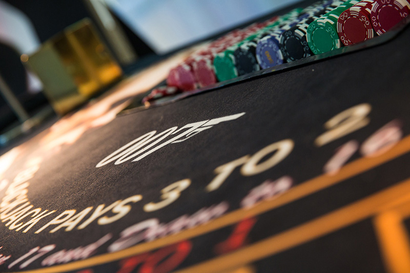 The most popular and requested casino tables of blackjack and roulette presented in 007 imagery, professionally roped together with floral features and intimate lighting. The casino table layouts are customised with James Bond imagery creating the look and feel of an authentic casino.